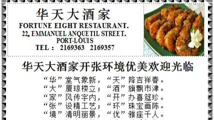 华天大酒店是毛里求斯的美食盛宴,这里的中华美食荟萃,有口皆碑,令人啧啧称赞,请别再犹豫,快快一睹为快和前来品尝!