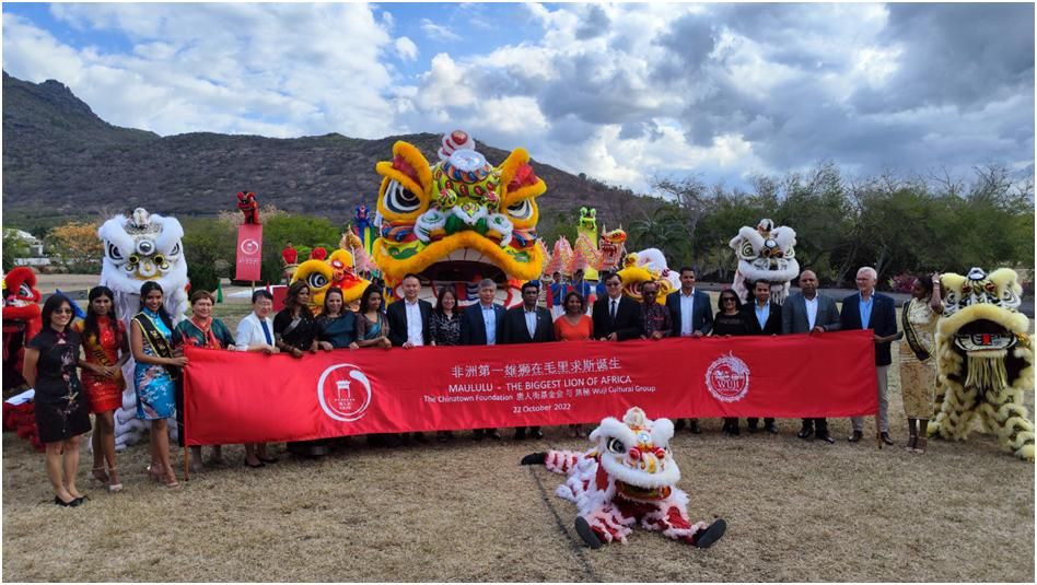 2022年10月22日,非洲雄狮“MAULULU”(巨型舞狮)在毛里求斯怡海智慧城诞生。