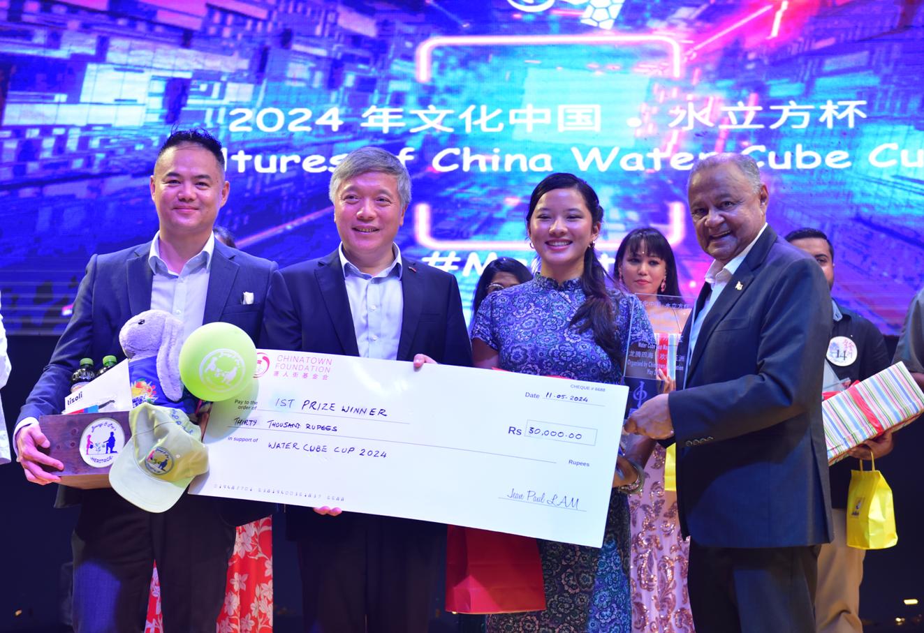 2024年5月11日上周六下午四时,唐人街基金会在晋非诺亚礼堂举办了2024年文化中国水立方杯中文歌曲大赛的毛里求斯决赛、朱立英大使夫妇、毛里求斯共和国副总统博赛松、杨俊文化参赞、议会私人秘书Rawoo先生、社会各界名流和贵宾,以及本岛广大各族观众济济一堂,共赏盛况。