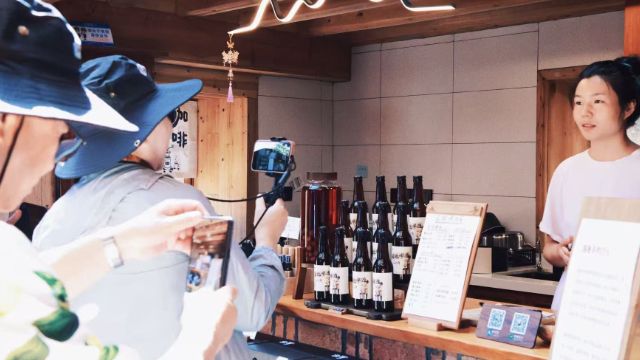 曾婉珍就是“新村民”之一。从江西景德镇陶瓷大学毕业后,曾婉珍夫妻俩一直从事美术教育行业。2019年9月,曾婉珍和丈夫胡文亮租下龙潭村的一栋老房子,改造成民宿和青花瓷主题小酒馆“檀舍”;胡文亮还投资翻新改造兼具酒馆、民宿和陶艺等功能的文创空间,并在黄酒的文创包装中融入油画、动漫、四平戏等元素,让拥有悠久历史的龙潭黄酒焕发新活力。