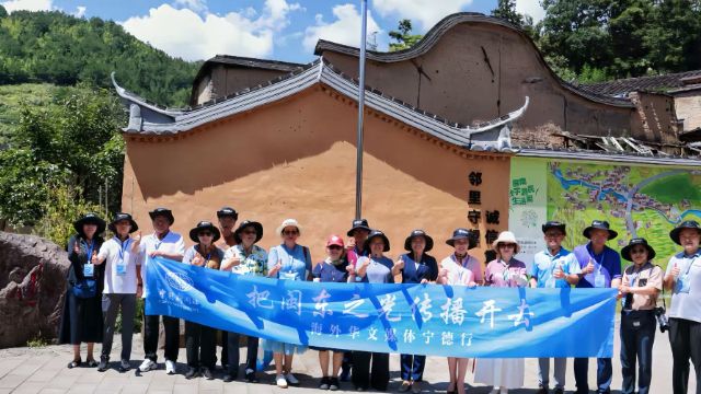 9月15日,12国16家海外华文媒体走进屏南县熙岭乡龙潭村、四坪村,感受文创业态勾勒出的古村新韵,实地体验乡村的诗意生活。图为在龙潭村合影留念。吕若萱摄